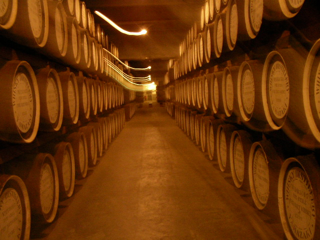 (ウィスキーの熟成樽。シャッター時間長いから光が・・・。 山崎蒸留所にて)